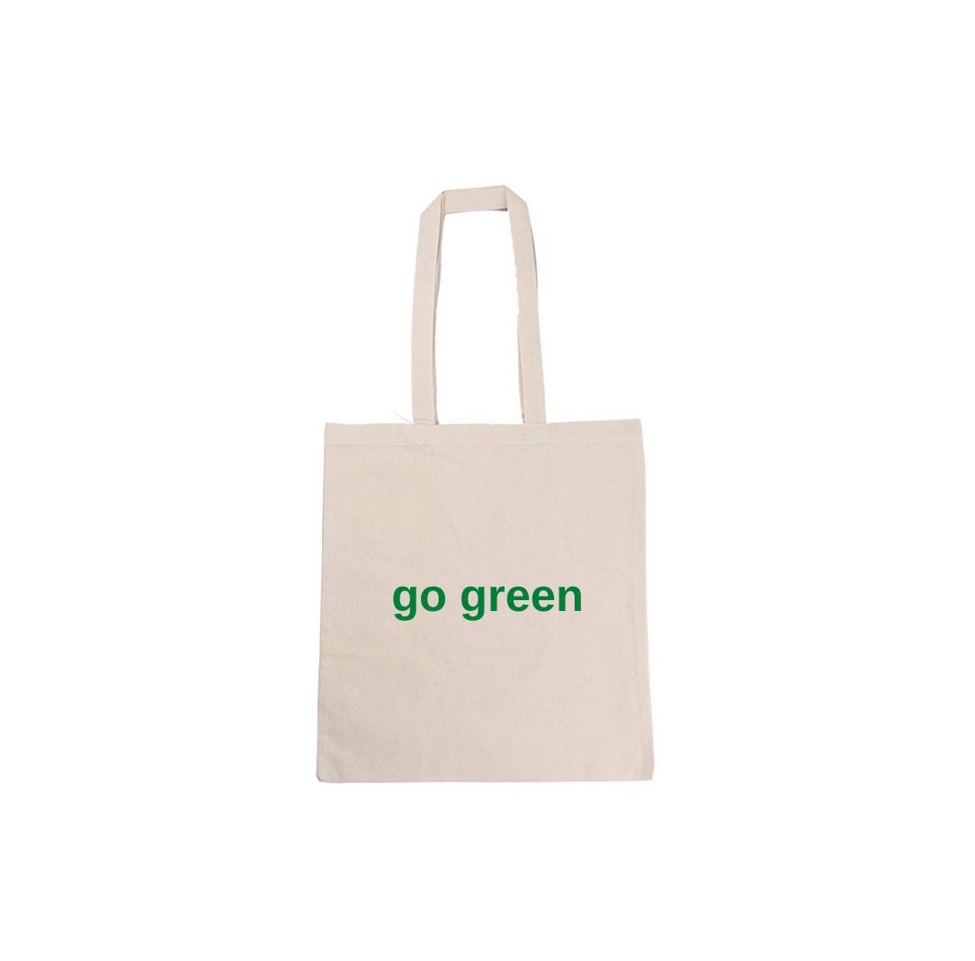 Our small size reusable cotton bags are the perfect eco-friendly solution to plastic bags. The cotton fibers are completely biodegradable material. Our bag has "go green" printed on both sides.