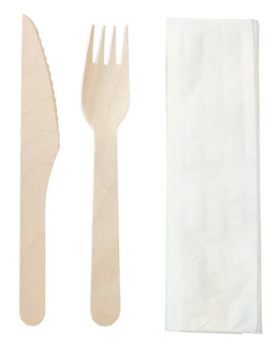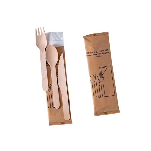 3 in 1 Wooden Cutlery Kit - ( Fork,Knife and Napkin), 500 sets