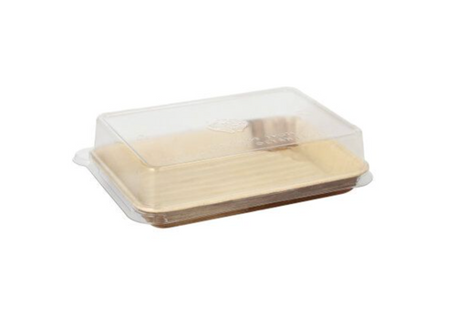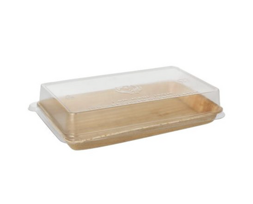 8.27" x 5.51" x 1.77" Sushi Tray with Clear rPET Lid - 50/100 Case - Large