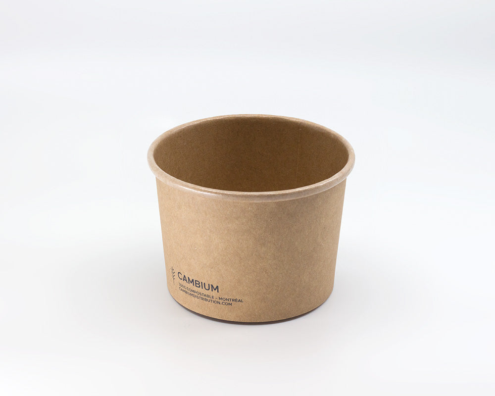 Unbleached cardboard laminated with a layer of PLA.